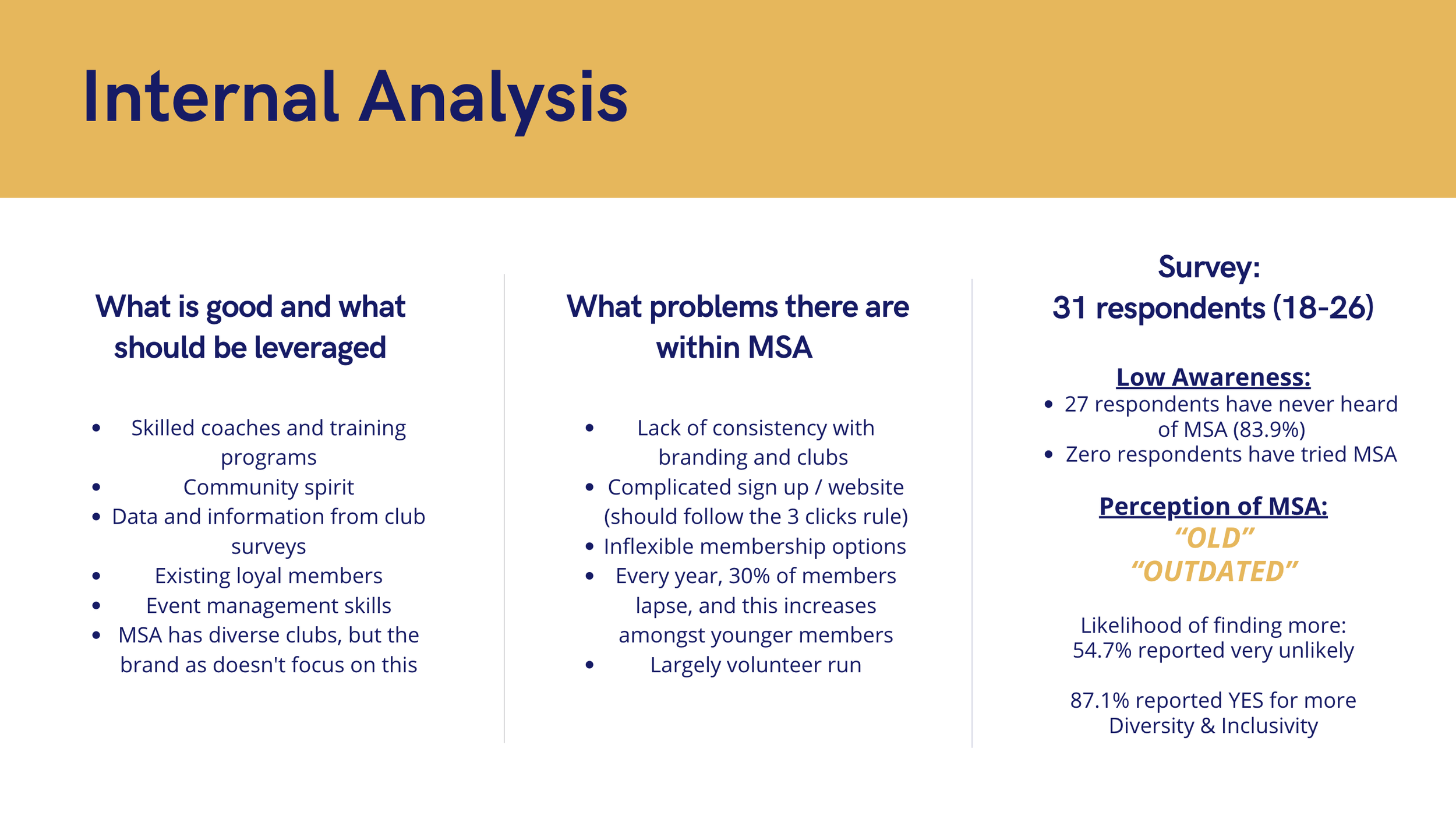 Our rebrand will update MSA's brand representation tools for consistency and operational efficiency, positioning MSA as "modern, fun, and free" to attract younger audiences.